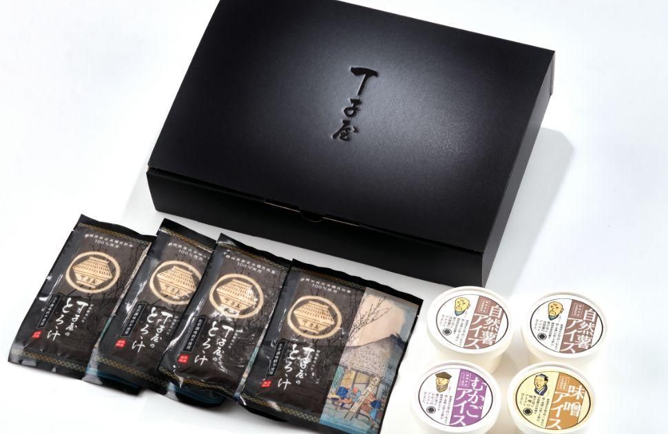 このページの商品は冷凍とろろ汁4食とオリジナルアイス4ヶセットで丁子屋化粧箱に入れてお届けさせていただきます。